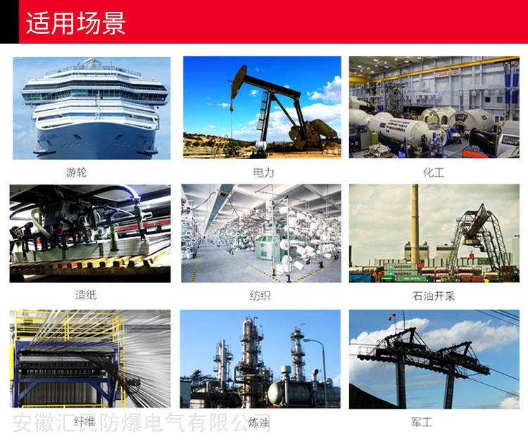 應用于石油開采、煉油、化工等危險環境及海洋石油平臺、游輪等場所。
